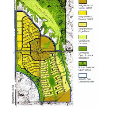 The built environment will enhance the pattern of the land, not work against it. “The richest parts of the land, in terms of drainage patterns, water resources and the resulting vegetation patterns are preserved. Source: Civano Neighborhood 1 Planned Area Development,